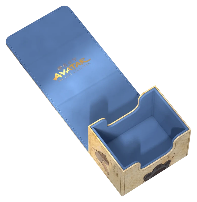 The Sidewinder 100+ made from durable Xenoskin material holds up to 100 double-sleeved cards, which are kept secure in the deck box thanks to a strong magnetic closure and soft microfiber inner lining. The durable, high-quality Xenoskin surface of the Sidewinder is printed in full color with officially licensed artwork from the Magic: The Gathering | Avatar: The Last Airbender set.